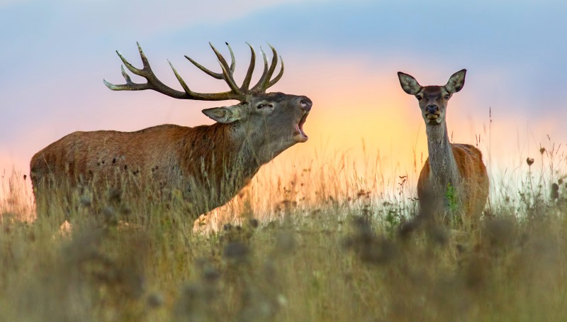 These are social animals, living in herds known as “rudler.” Outside the rut, stags and hinds live separately, but calves stay with their mothers’ groups until about two years of age. A lead hind – usually the oldest female – guides the herd.